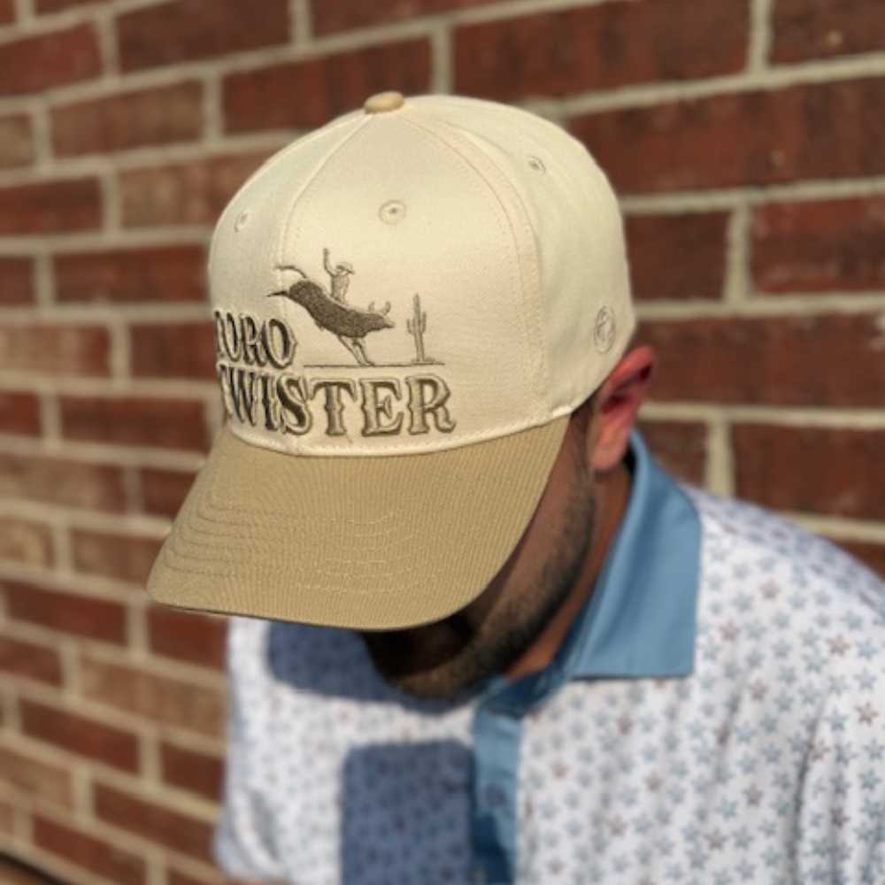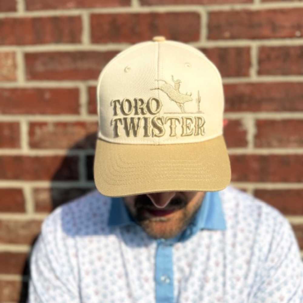 The “Toro Twister” cap was built for wild ones—the ones who ride life like it’s a bull at the county fair. It’s sun-bleached canvas, old-school embroidered grit, and a desert sand brim that doesn’t flinch under pressure.